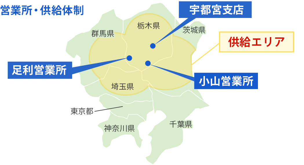 栃木県を中心に、幅広いエリアで潤滑油・燃料油を配送しております。